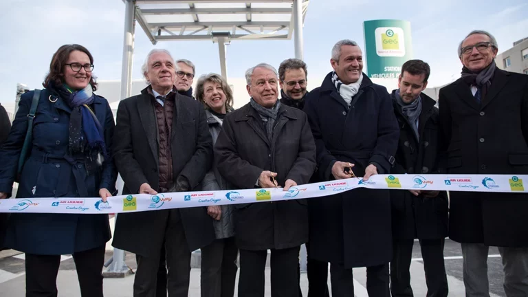 The HyWay * project has reached another milestone. Indeed, after the deployment of the largest fleet of hydrogen-powered electric vehicles in Europe (21 Renault Kangoo ZE-H2 utility vehicles, 3 of which belong to Air Liquide) and the opening of the Air Liquide station in Sassenage (38) in June, a new hydrogen charging station of a larger capacity has just been inaugurated. This station designed, installed and operated by Air Liquide in Grenoble in the Gaz Electricité de Grenoble (GEG) site, will eventually be powered with hydrogen produced by electrolysis.